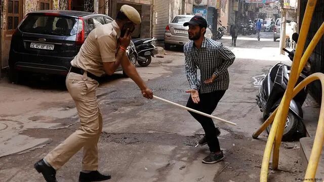 去年3月,印度疫情爆发之后,印度政府也效仿中国进行了严格的封城来管控人员流动。当时我们看到了很多报道——大批警察出动执行封城令,对于违背封城令的人群一律 棍棒伺候 。