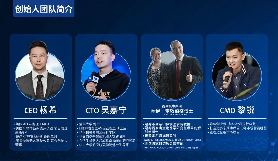 小象科技是世界首例全柔性仿生机器人公司,公司聚合了该领域世界范围内优质团队,来自MIT、乔治亚、康奈尔, 团队外部顾问有2016年 诺贝尔化学奖费舍尔 詹姆斯·弗雷泽 、康奈尔大学荣誉教授乔伊博士。