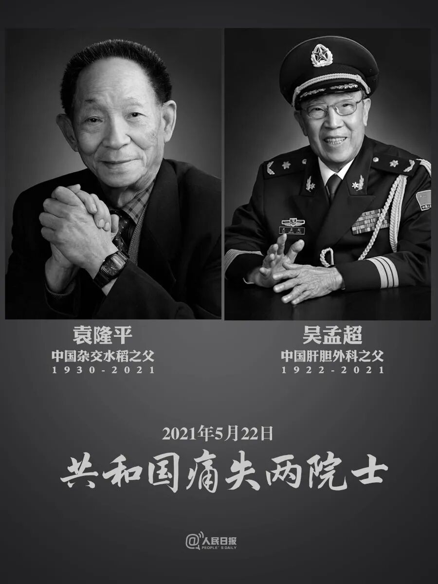 “中国肝胆外科之父”吴孟超逝世享年99岁5月22日13时07分“杂交水稻之父”袁隆平逝世享年91岁