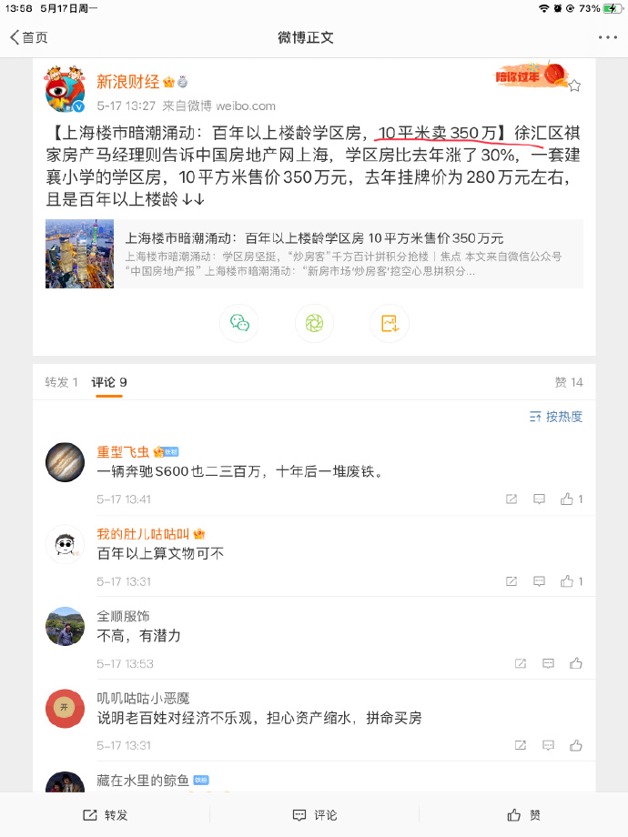 我和保姆聊天。发现了一个有趣的问题,农民有钱了,还能干什么?小县城已经有房有车了,也不可能去京沪广深。攒钱也没用了,不如花掉。99%就是面子消费。