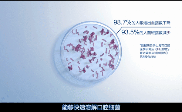 官方通过口腔的细菌检测追踪: 清洁8小时内,细菌增长率少到可以忽略不计。