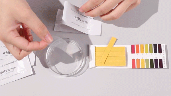 Whitewash亮白牙贴,主要成分是6%浓度过氧化氢(H₂O₂)、羟基磷灰石和果胶。