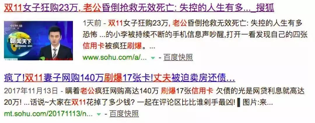 这个“天选”的女孩,才挥霍了半年,就开始为透支的信用卡,预支了焦虑。我们没有她的同款幸运,但在刷爆信用卡的路上,殊途同归。 刚刚过去的狂欢购物节,就曝出一则新闻:双11妻子网购140万,刷爆17张卡,丈夫被迫卖房还债。