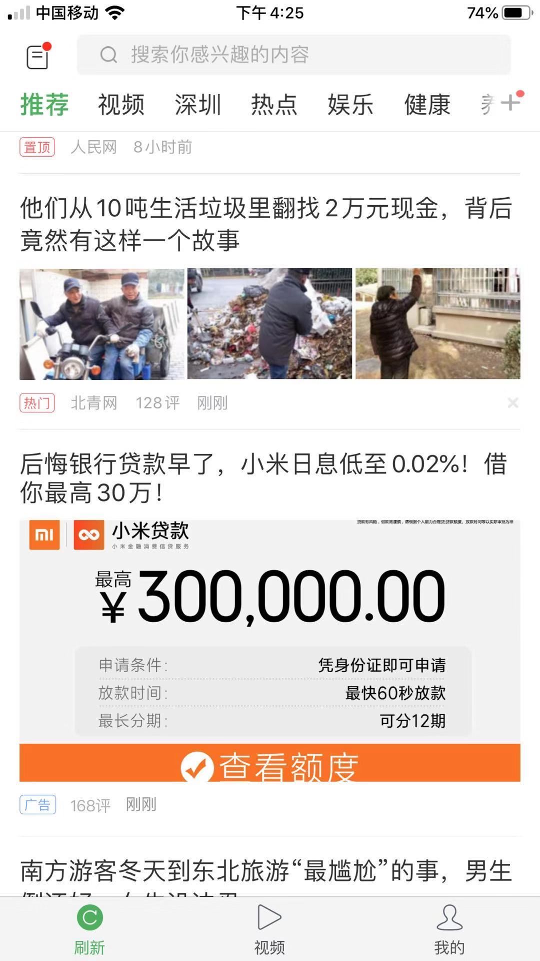 打开一个新闻APP,第一页还没刷完,就出现了一个网贷广告。