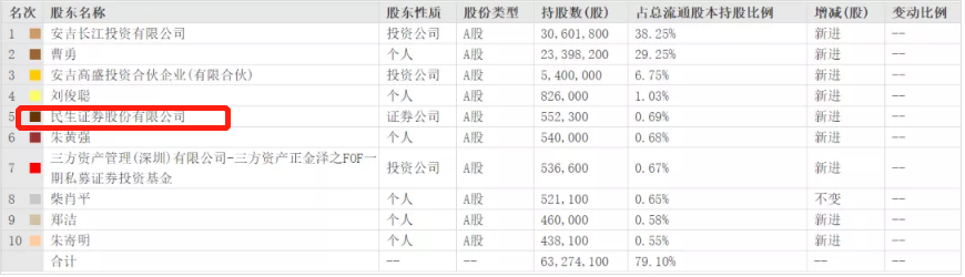 事发当天是3月31日,正好是一季度的最后一天,所以一季报披露的十大股东里可以看到 第五大股东是买了55万股 的民生证券。来源:东方财富网