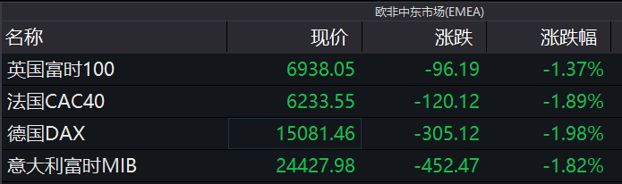 今天注定是个不平静的夜晚,刚刚看欧美股市均大幅下跌中: