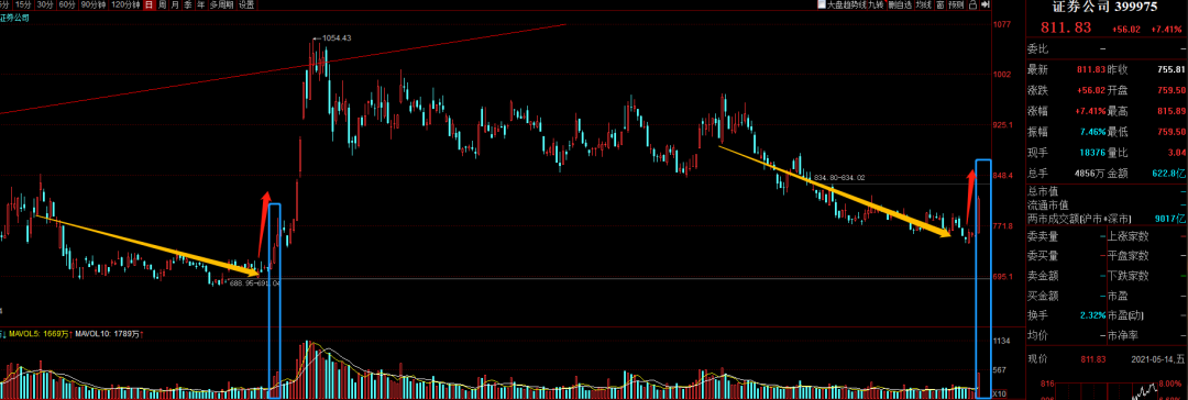 我们从券商历史数据上看,券商的启动一般就是市场的风向标,此次券商动作与2020年6月19日的走势极为相似。