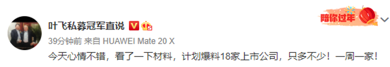 被点燃了小宇宙的叶飞,计划爆料10家上市公司,包括:中源家居、东方时尚、今创集团、维诺信、昊志机电、华钰矿业、祥鑫科技、隆基机械、法兰泰克、众应互联(ST众应)。