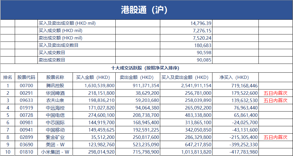 ,陆股通、港股通数据及十大成交活跃股,点击可看大图