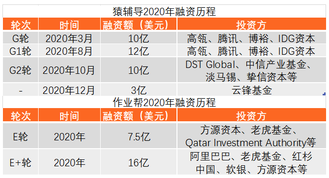 而此次被罚款的猿辅导和作业帮在2020年分别融资达到35亿美元(约228亿人民币)和23.5亿美元(约151.5亿人民币),分别位列第一第二。