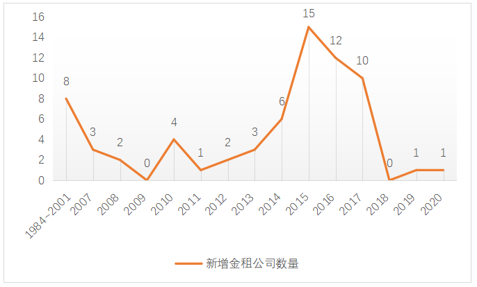 2017年后,由于金融监管趋紧,金租公司的批筹进度放缓。