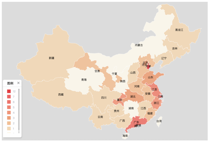 从地区分布来看 ,金租公司集中于华东地区,高达24家。东北地区和西北地区公司最少,各有3家。有9个省级行政区未成立金租公司。