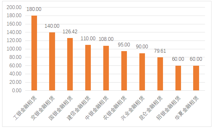图2 注册资本排名前十的金租公司(单位:亿元)
