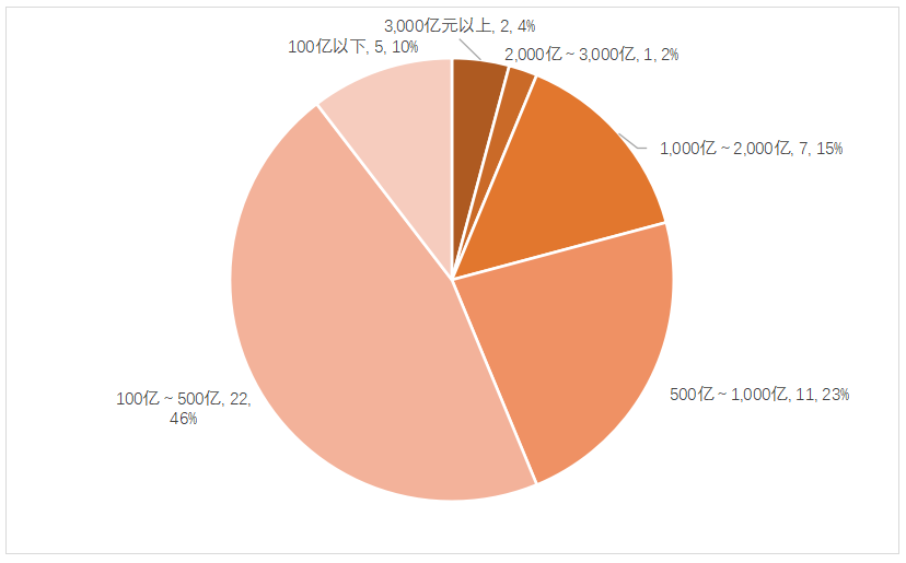 (注:区间包含最低数值;比如10~20为大于等于10亿元,小于20亿元)