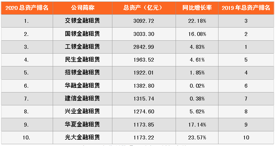 金融租赁2020业绩排名:2家公司资产破3000亿,净利润最高增长78%