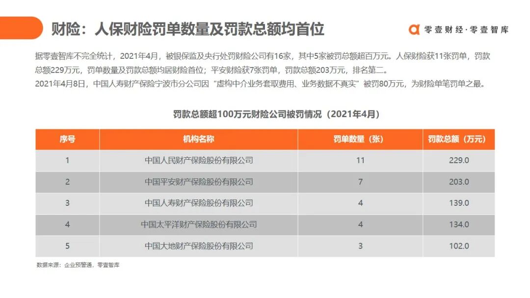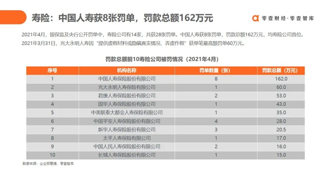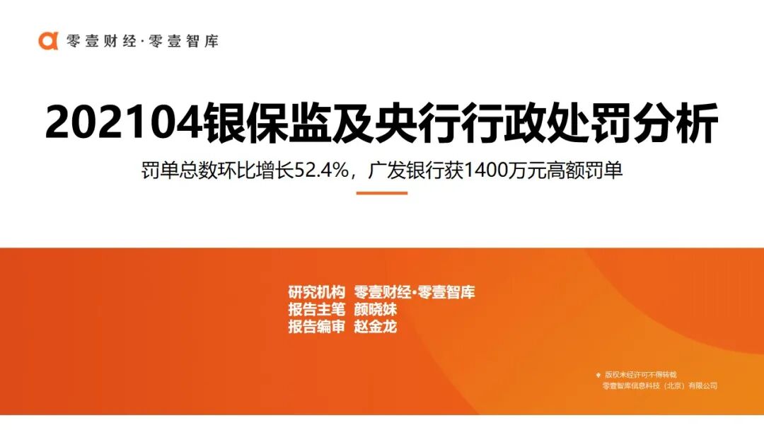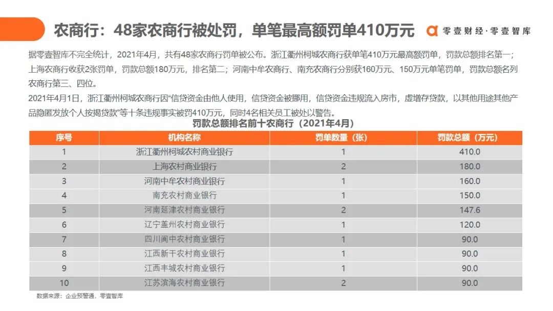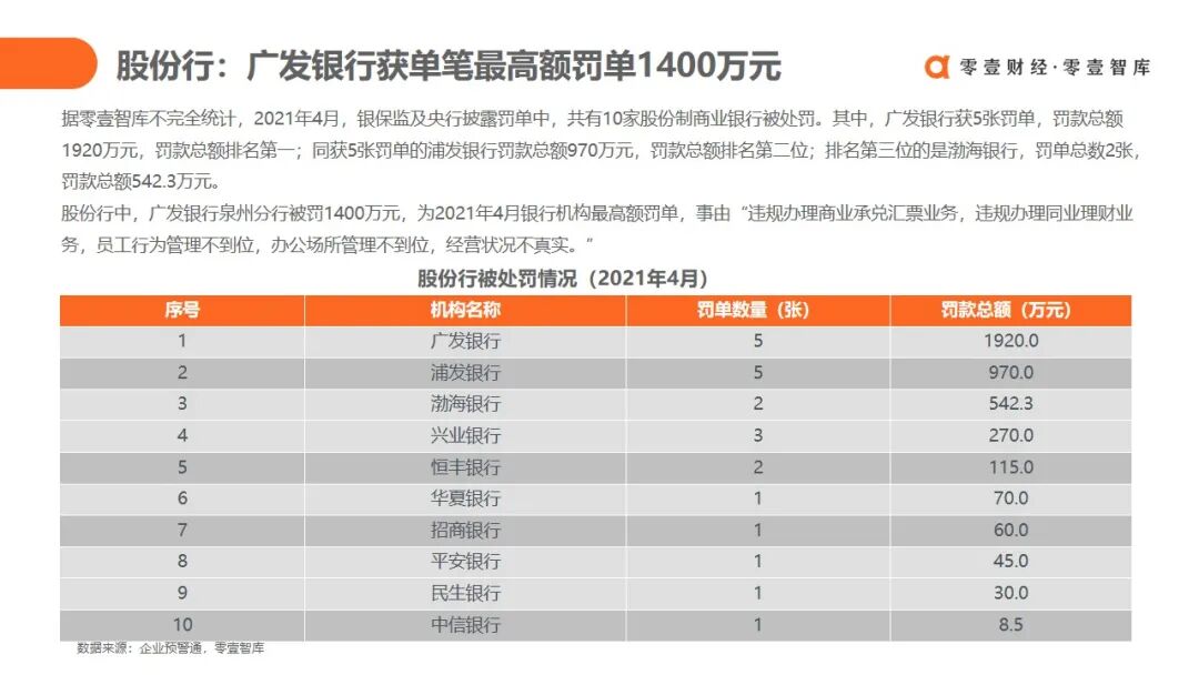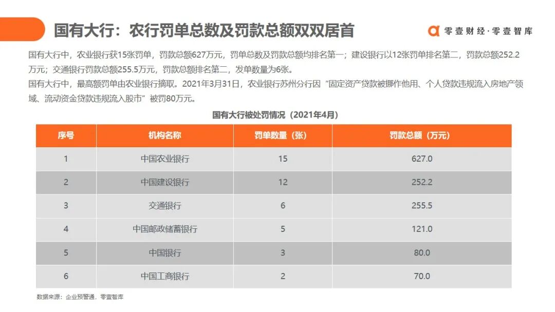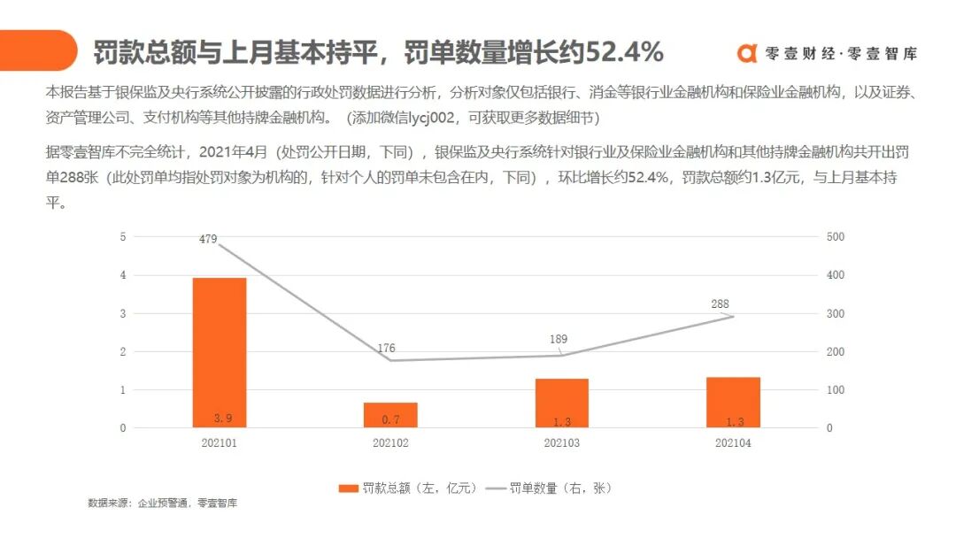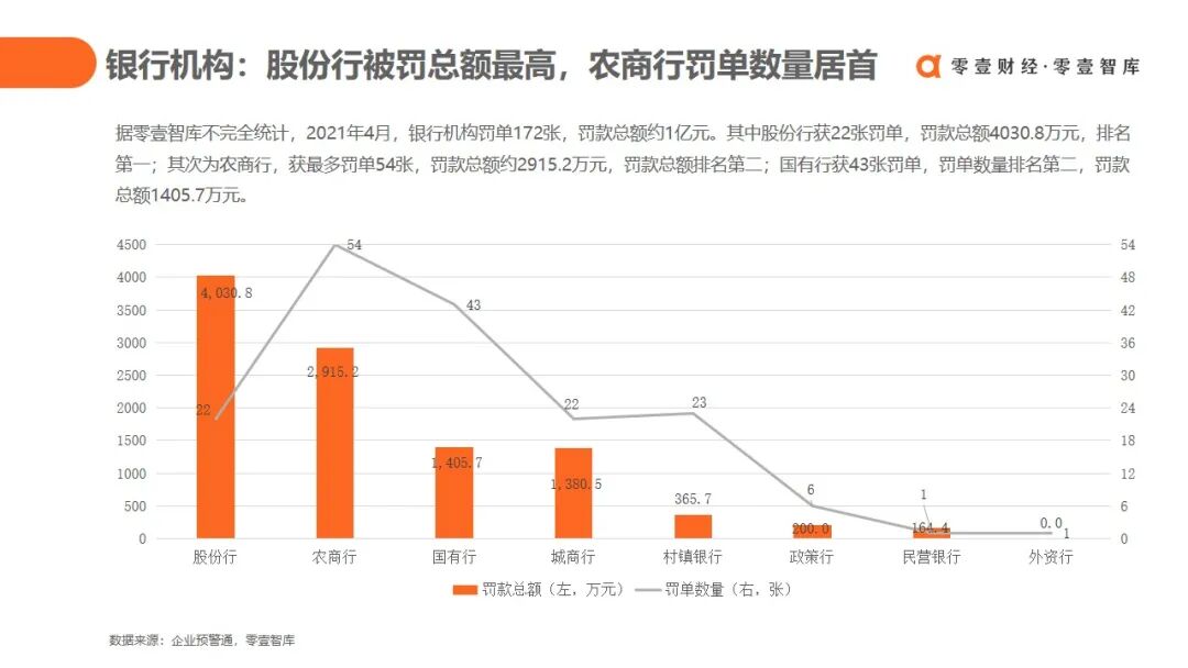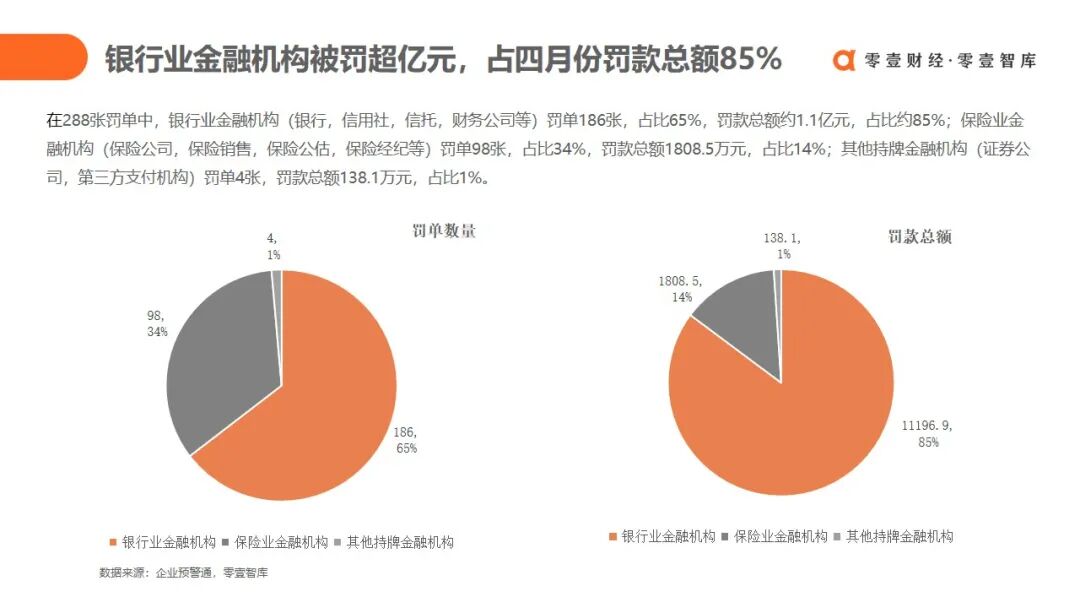 2、银行业金融机构被罚超亿元,占四月份罚款总额85%