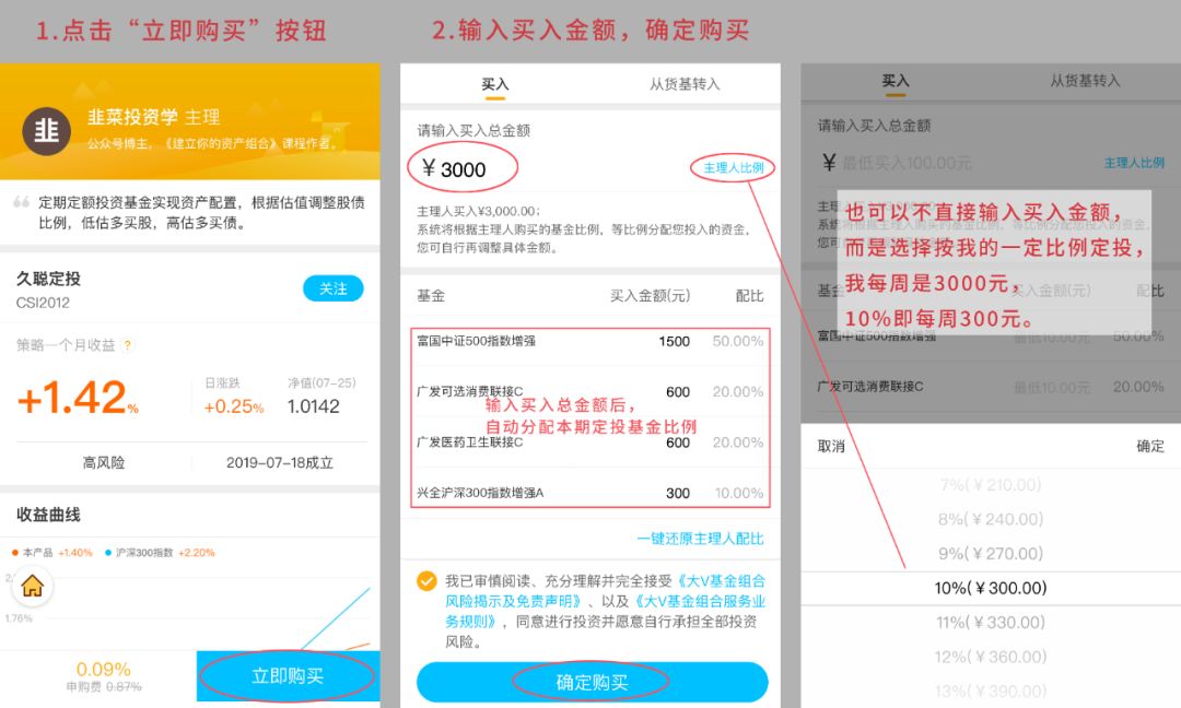 识别下方二维码,打开组合页面选立即购买,然后输入金额即可,系统会自动把金额按比例分配到选定的基金上: