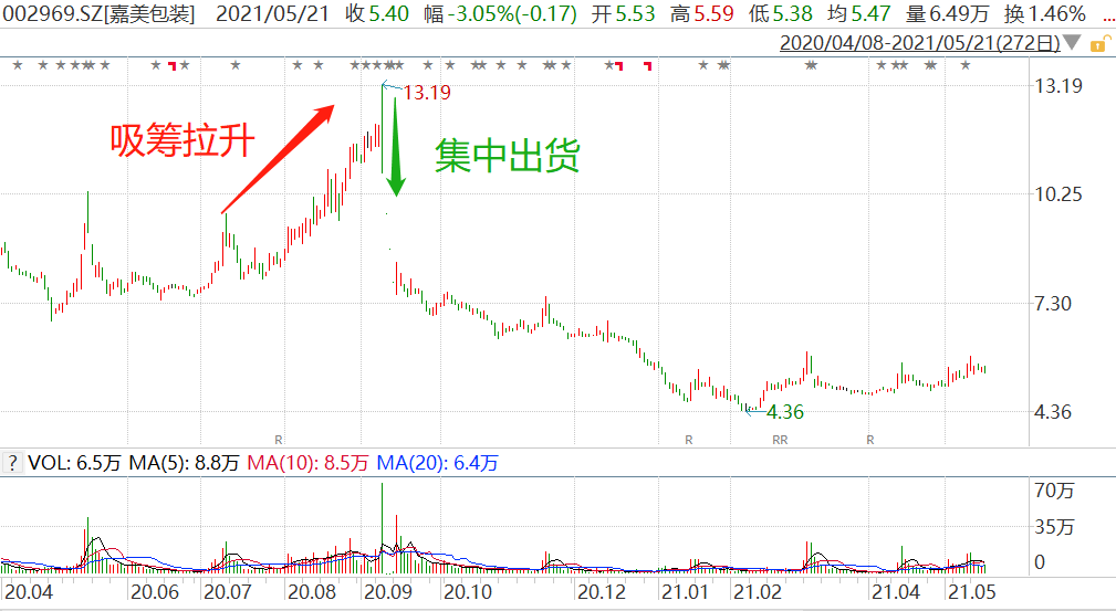 被操纵的股票是嘉美包装,之前市值在大几十亿,股价高的时候也超过了100亿,并不算特别典型的小盘股。