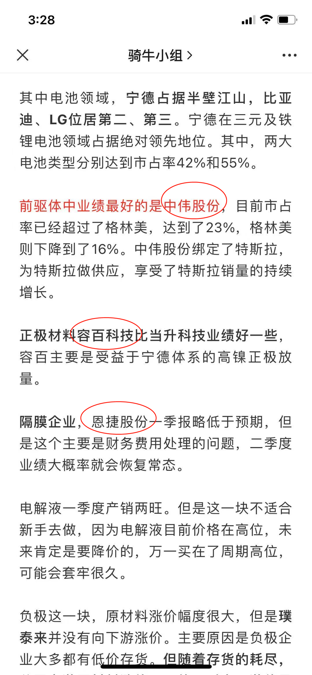 其中重点跟大家聊的前驱体中伟股份今天大涨逾11%再次刷新了历史新高,如果我没漏掉什么票的话,中伟应该是电池产业链下游走的最强的票了。
