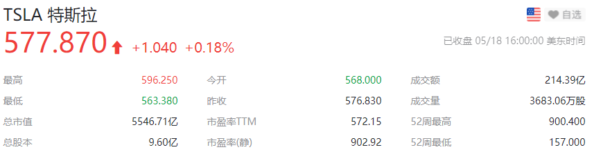 状况频出的同时,特斯拉股价也阴跌不止。截至5月18日收盘,其股价报577.87美元,相比1月份高点(900.4美元)已跌去35.8%,总市值蒸发超过3100亿美元,将近2万亿元。
