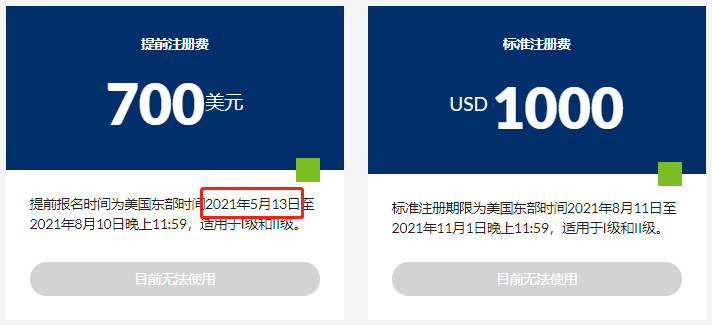 一二级注册及预考开始时间为: 2021年5月13日;