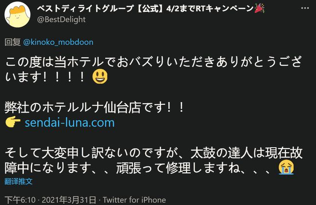 甚至,酒店的官方人员顺着网线爬过来告诉他,自己酒店是在仙台,目前这台《太鼓达人》的街机已经被人锤废了,正在抓紧维修,但并未告知他具体的安装原因。