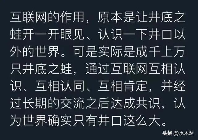 所以互联网上最容易传播的从来就是各种情绪和偏见,而不是真正的价值,这99%的人自以为掌握了各种真理和见识,其实他们只是把情绪当理性,把信息当知识,把偏见当思想。