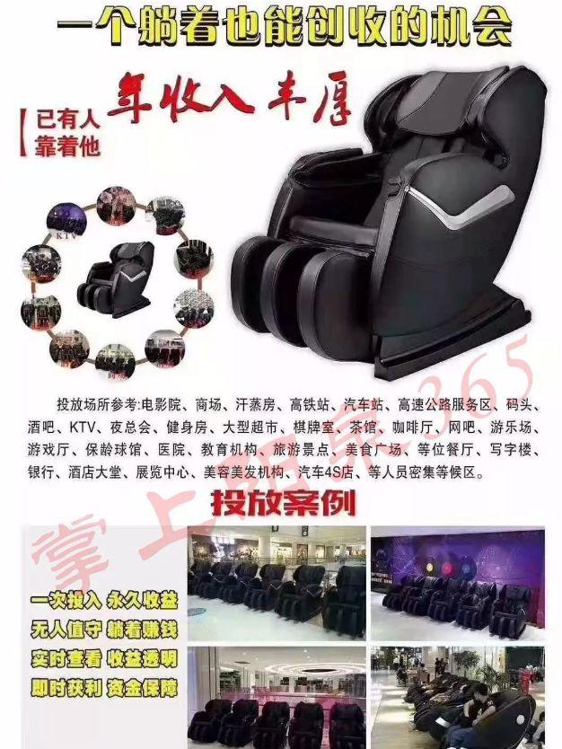 9.9元体验一次全身SPA 在共享经济大爆发的那几年,前后有数千个共享项目涌现。作为市场上最廉价的按摩休闲方式,共享按摩椅被包装成共享经济中最好的商业投资机遇之一。打着共享大旗,做着“分时租赁”生意的共享按摩椅,在2017年如雨后春笋一样在各类场景中冒出来。一方面,在共享经济赛道中,共享按摩椅完全可以称得上是唯一一个“躺赚”的品类。从行业背景看:符合大健康的消费趋势、符合消费迭代升级;从经营模式看:不需要押金、低投入高毛利回本快、运维成本低,铺设场景多元、在等待的特定场景里也是刚需…… 共享按摩椅玩法很简单:一是直接卖椅子挣差价,二是收服务费提成。 招商说辞非常诱人。例
