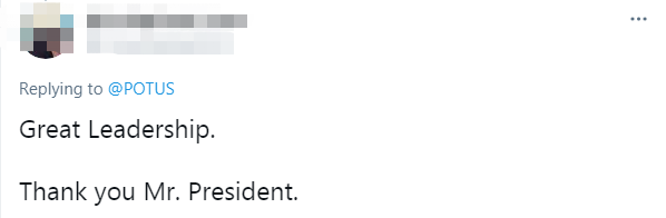 “伟大的领导。感谢总统先生!”“从来不喜欢戴口罩!”