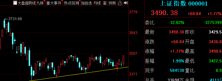 指数方面,之前说过关注前期低点连接线的支撑,目前看这个位置支撑强度很大,上证指数上周连续两天回踩都被拉了回来,并且上周五收了一根大阳线;今天会冲击压制两个月的箱体上沿,这里需要观察大金融是否有持续性,否则还会是震荡走势;