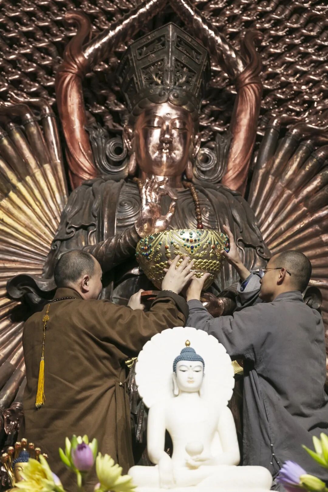 文殊菩萨真正的身体是无有出世,亦无涅槃的。因为“菩萨常住清净法界,随众生心,示涅槃故。”也就是说,你来到五台山,正念提起,忆念菩萨,恋慕菩萨,甚至头顶《华严经》,三步一拜,痛哭流涕,就能灭无量重罪,获无量福报,开无上智慧,乃至亲见文殊菩萨。就像太阳普照世间,只要容器里的水干净,太阳光就会映射进去。容器破碎,太阳的光影也就不见了。但实际上太阳本身并没有来去。只要众生具法器之资,清净其心,圣无不现。