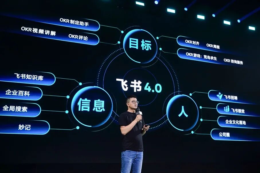 张楠表示,随着4.0版本的发布,飞书已经从一个基于IM、文档的协同办公产品,变成了涵盖 OKR、绩效、招聘等多种产品的协作与管理平台。