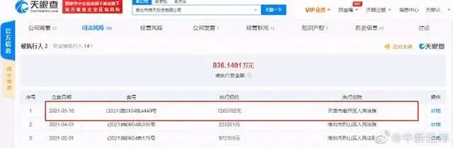 天眼查App显示,近日,叶飞及其关联公司淮北市倚天投资有限公司等已成为被执行人,执行标的7265782元,案号(2021)津0104执4440号,执行法院为天津市南开区人民法院。截至目前,叶飞及其公司被执行数额超836万元 。同时,该公司多次被列为失信被执行人(老赖),涉及多则终本案件及限制消费令。淮北市倚天投资有限公司成立于2010年4月,注册资本1000万人民币,法定代表人为张文珂,经营范围含私募证券投资、股权投资、创业投资。股东信息显示,叶飞持股99%为最大股东、最终受益人及疑似实际控制人。