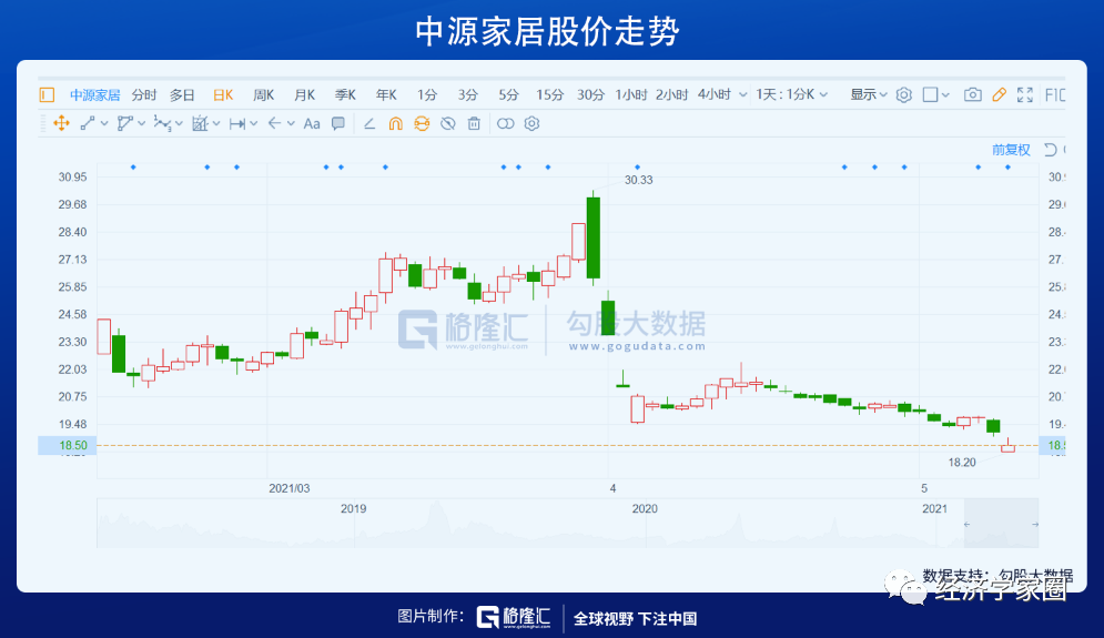 有媒体称,中源家居以“A股第一杀猪盘”的称号名声在外。从下图可以看到,从2019年至今,该股出现过4次暴跌行情,且在暴跌行情出现之前,中源家居无一例外地出现过大幅上涨。