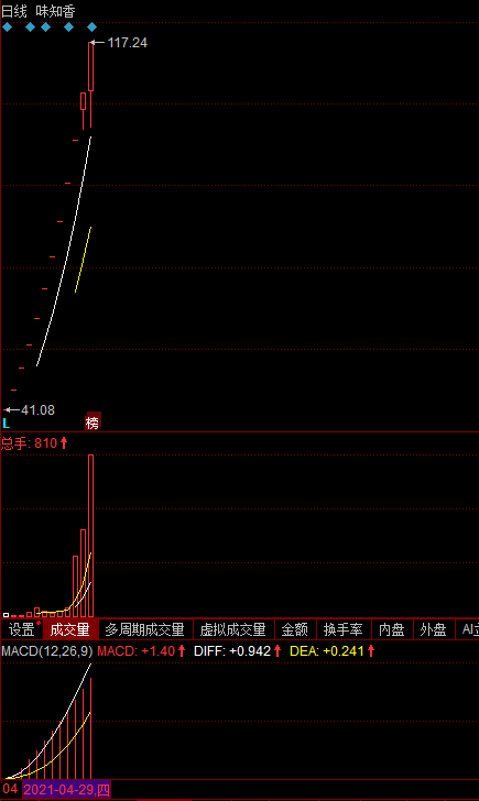 目前市场成交量始终不能有效放大!创业板大盘权重股大幅度上涨和基金抱团股票今天表现强劲必然造成大量别的股票下跌!一个板块上涨就会牺牲多个板块下跌!次新股表现强劲不受影响!味知香!福莱新材!百龙创园吸引了场内资金!