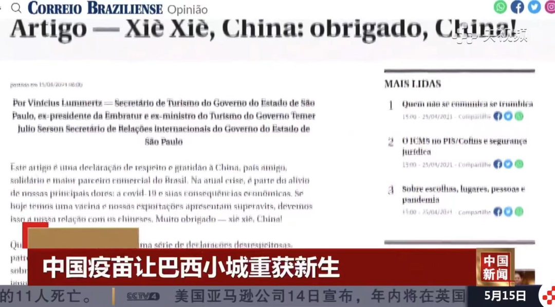 印度有14亿人口,巴西只有2.1亿。但现在,印度的新冠死亡人数是28万,巴西却已有43万人死于新冠病毒,远高于印度。今年4月以来,巴西新冠肺炎日均新增死亡人数在3000人左右,几乎占了全球日均的三分之一。巴西传染病学专家多次表示:“巴西的死亡率更令人震惊。”巴西副总统莫朗也承认,死亡人数已经超过了“常识中的极限”。而在这样惨烈的情况下,巴西却有一个不起眼的小镇创造了奇迹——感染率非常低,生活基本正常。 因为,这个小镇的居民集体接种了中国的疫苗。 仅仅3个月,这个叫“塞拉纳”的巴西小镇就从阴霾密布,到绝处逢生,实现了命运的逆转。这是一场中国疫苗的胜利,更是科学的胜利、善良的胜利。它值得被更多的人看到。