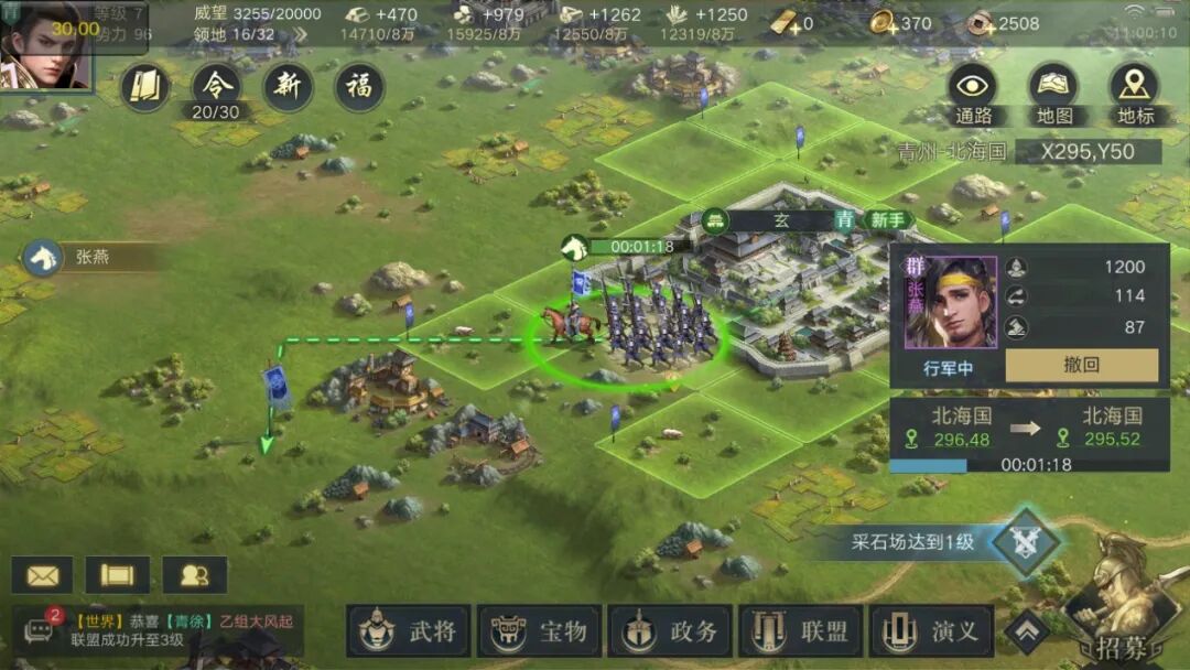 这些通行路径由以下几种地格组成:1级土地、官道、玩家占领的土地和盟友占领的土地。在游戏内,“通路”会通过连通的绿色地格可视化地呈现,选择对应的通路即可完成行军。