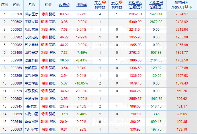 【机构买卖统计】