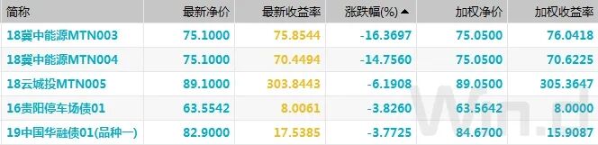 信用债行情整体稳定,冀中能源集团债大跌,“18冀中能源MTN003”跌超16%,“18冀中能源MTN004”跌近15%;“H6泰禾03”跌超20%,“PR渤海01”、“16苏宁02”和“18云城投MTN005”均跌超6%,“16贵阳停车场债01”跌近4%,“19中国华融债01(品种一)”跌近4%。涨幅居前债券方面,“16春华水务MTN002”涨近28%,“18鸿坤03”涨超16%,“20滨建投MTN002”涨近12%,“12青国投MTN3”涨近10%,“16汉当科MTN003”涨超8%,“19中原资产MTN001”涨4%。