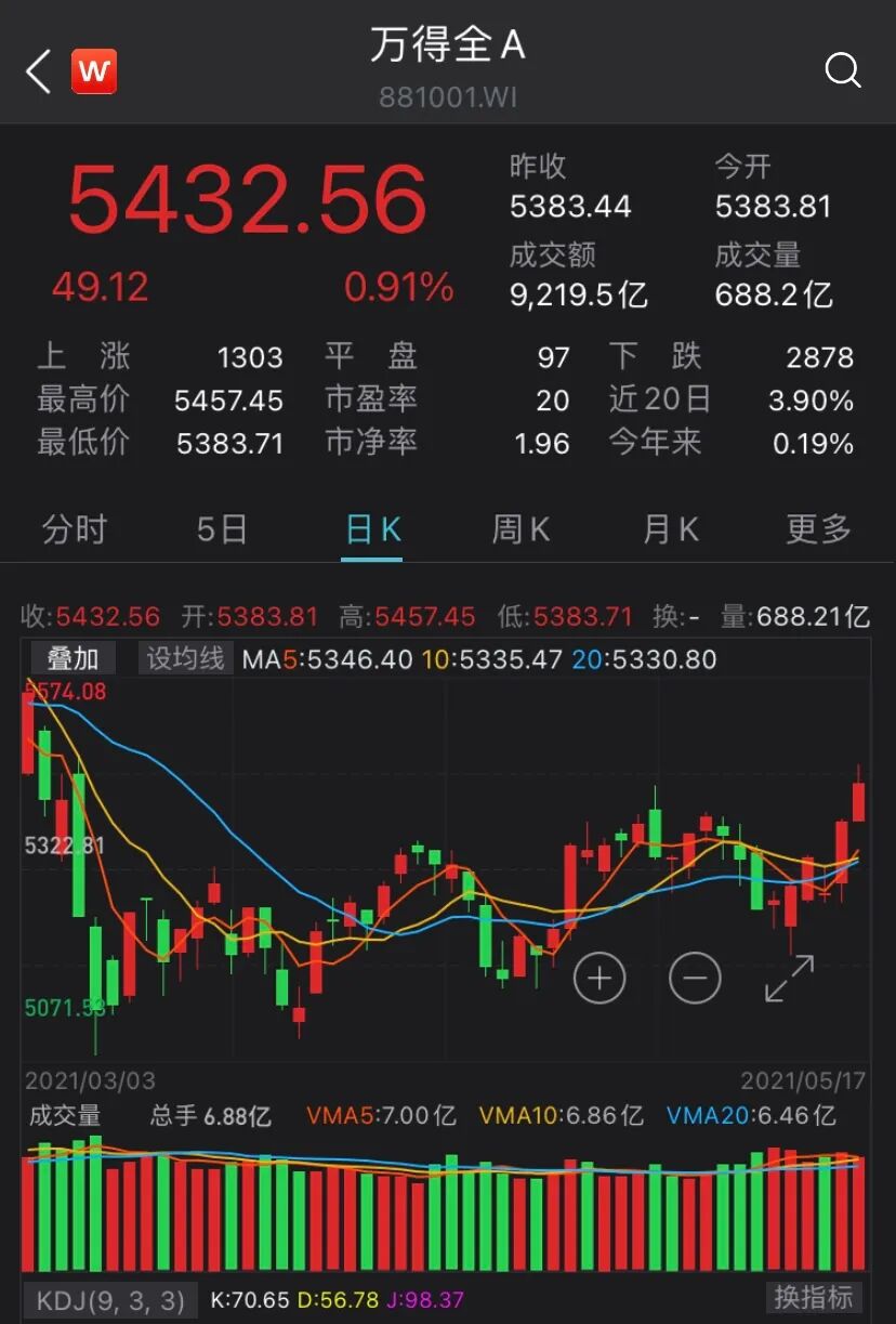 从5月17日A股具体走势来看,延续上周五放量拉升的态势,全天高开高走, 2个多月以来成交量首次突破9000亿元。与此同时,股指亦同步创出阶段新高。