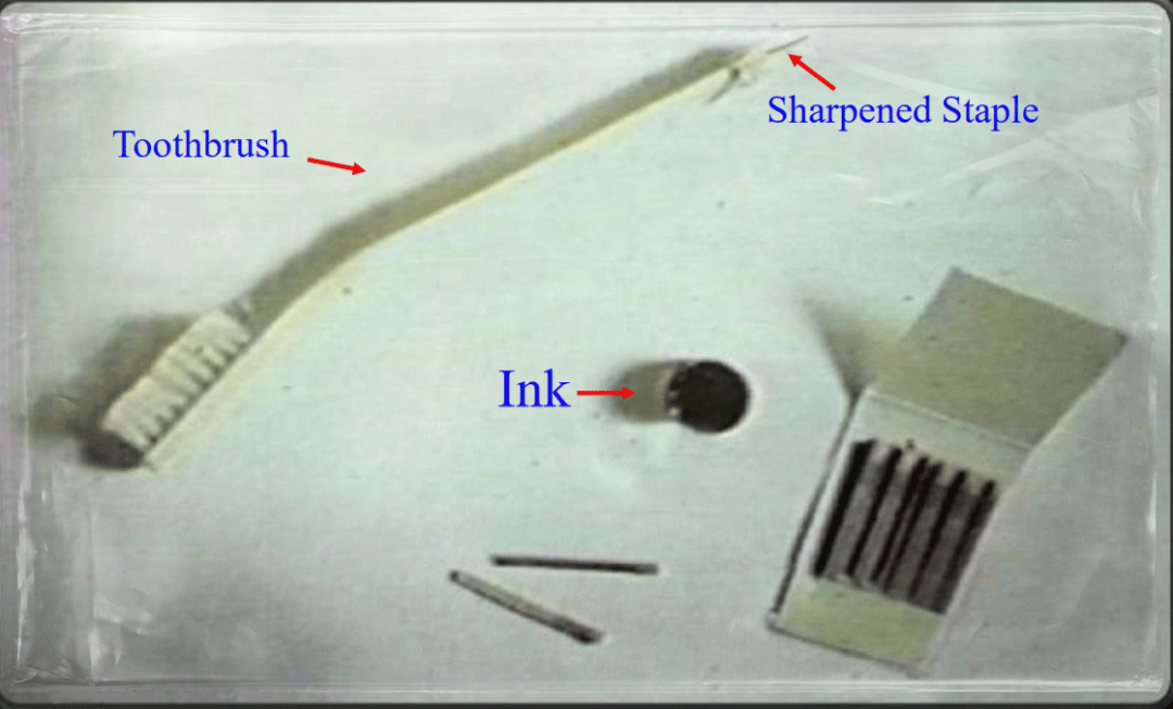 · 高级一点的纹身枪则是由四驱车马达、电池、圆珠笔构成 由于工具稀缺,一把土制纹身枪,会被一所监狱的好哥们共同使用。 结果显而易见,在监狱纹身,会让这些想要获得荣誉的犯人交叉感染丙型肝炎、艾滋病毒等。